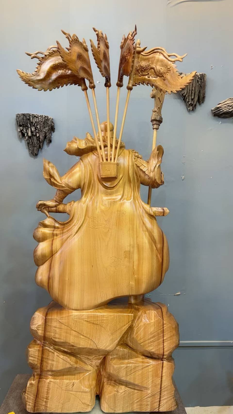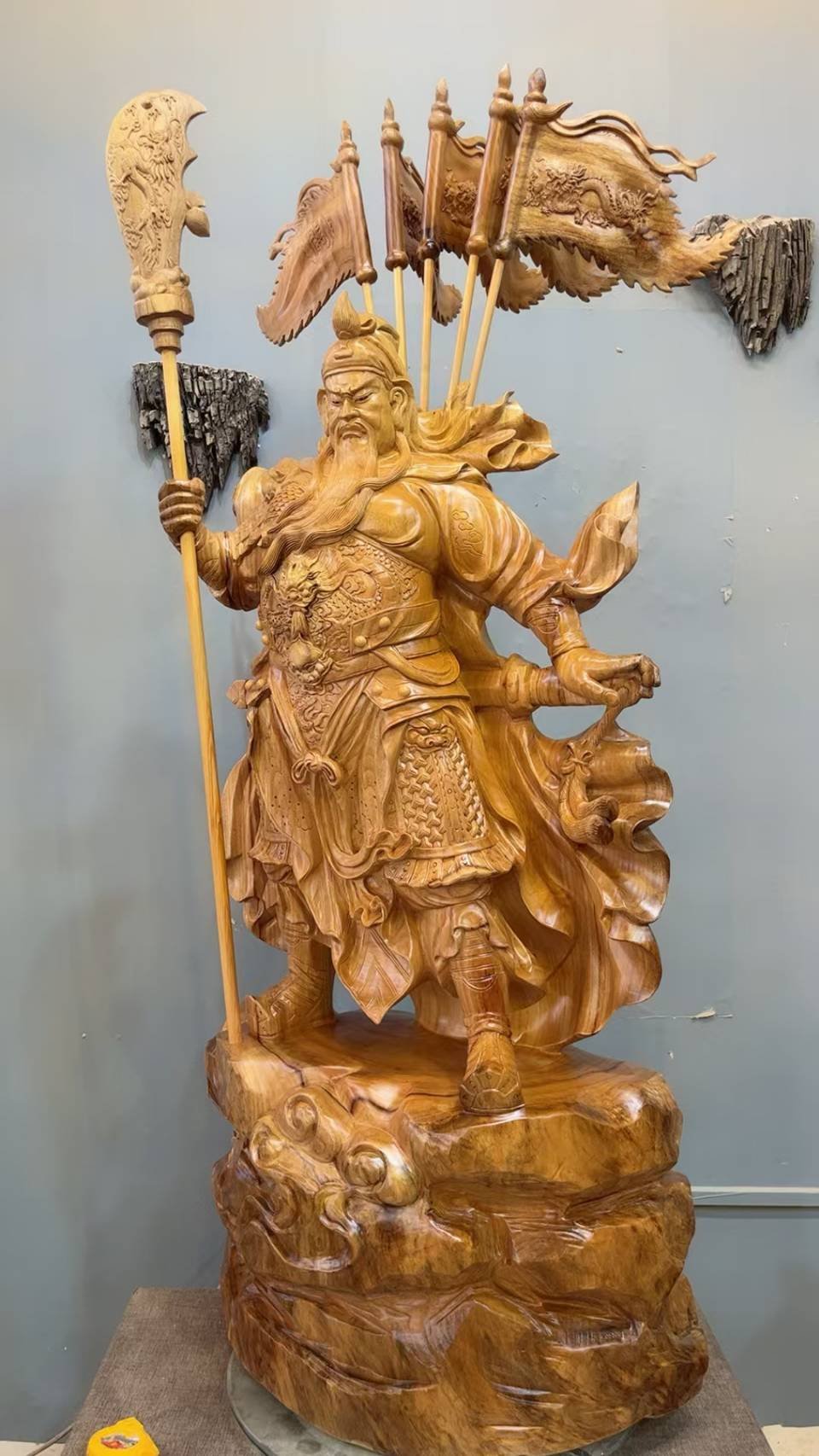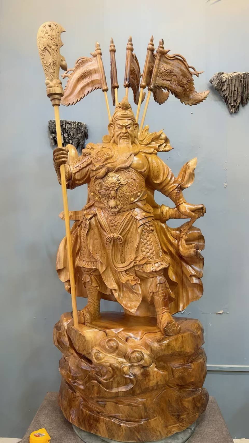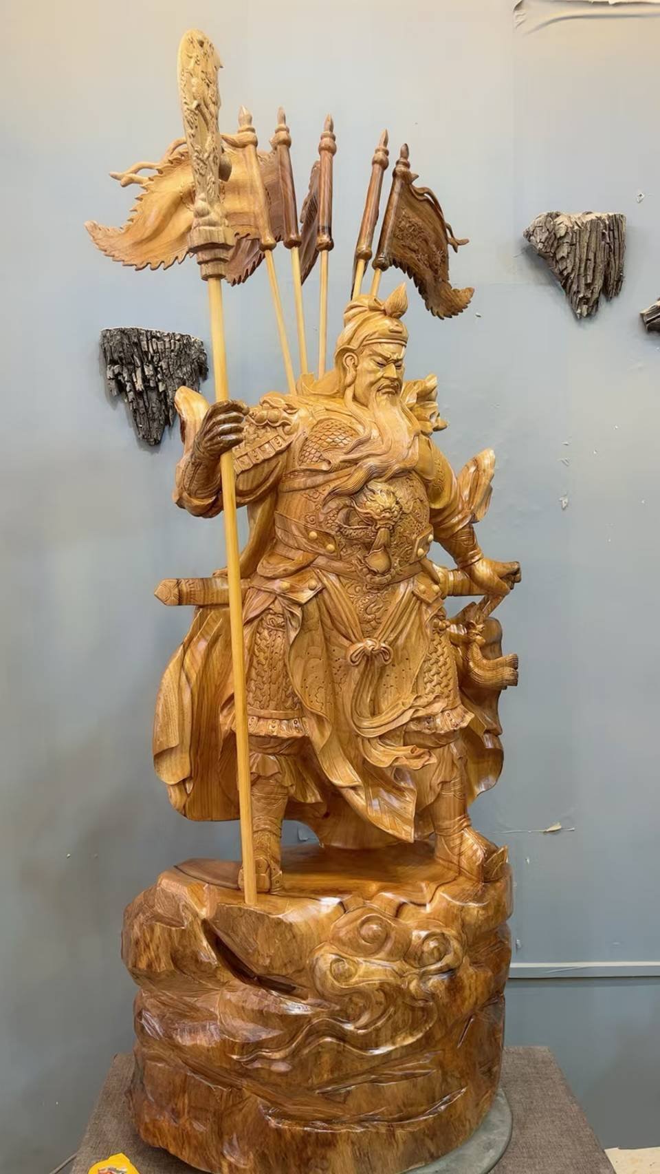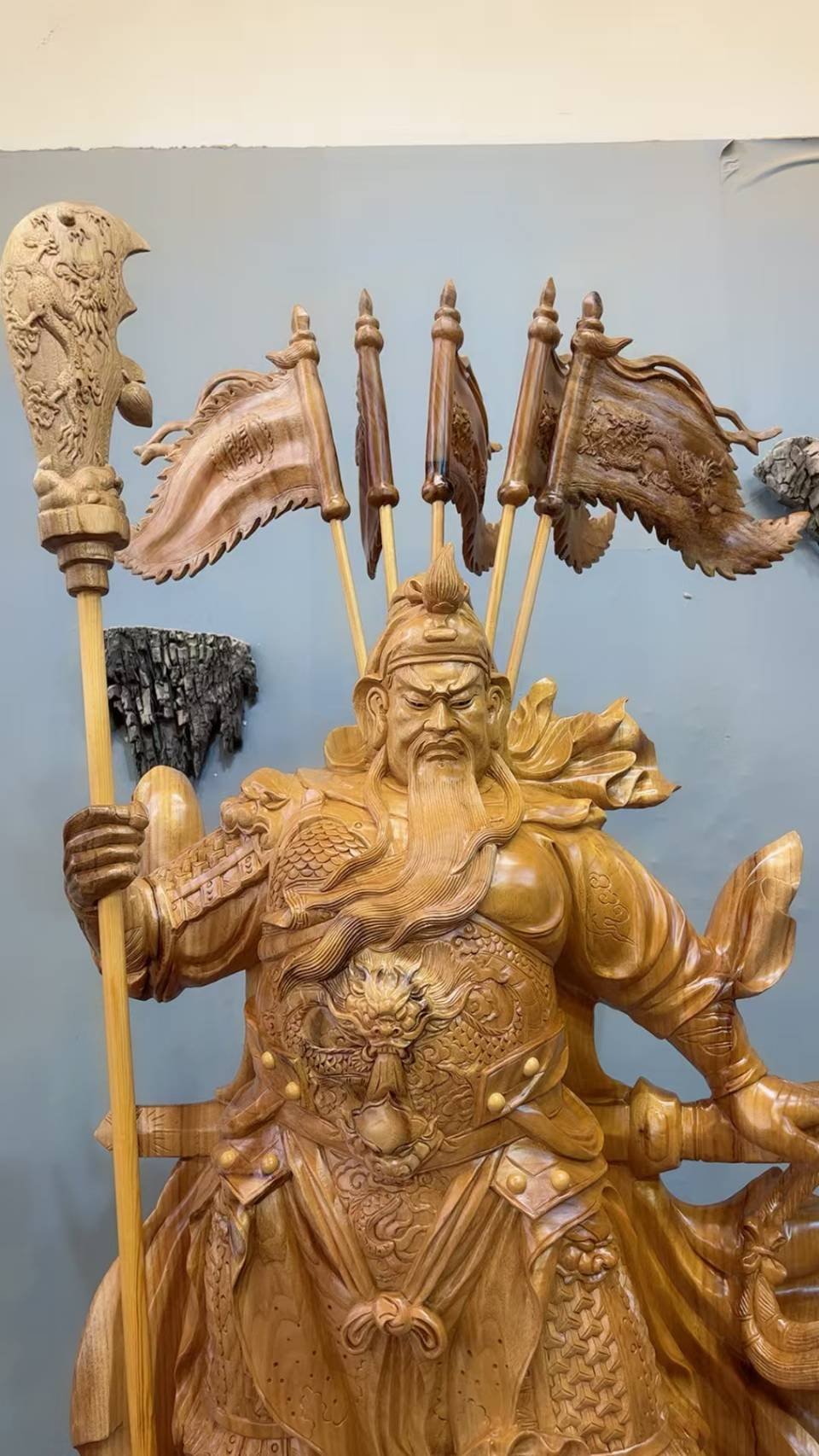 #ผลงานใหม่ล่าสุด! "เทพเจ้ากวนอูปาง 5 ธงบัญชาทัพ ไม้หอมการบูร 150 ซม." องค์ใหญ่ทรงพลัง สุดยอดชิ้นงานแกะสลักชั้นเยี่ยมโดยช่างฝีมือระดับประเทศชนิดหาตัวจับยาก!!